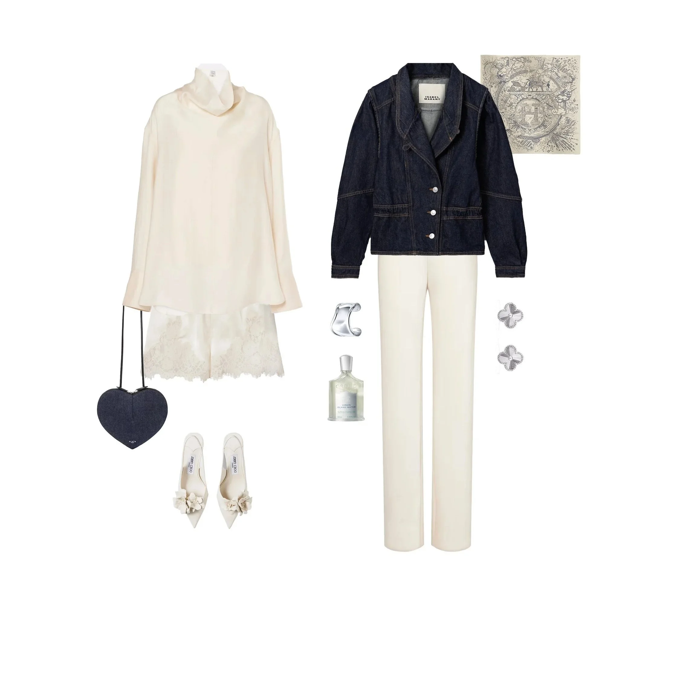 Denim and silk are about elevated contrast. Rugged texture against fluid shine. Denim brings ease and structure; silk introduces movement and refinement. One relaxes the look, the other sharpens it. This pairing is unapologetic about its authority.